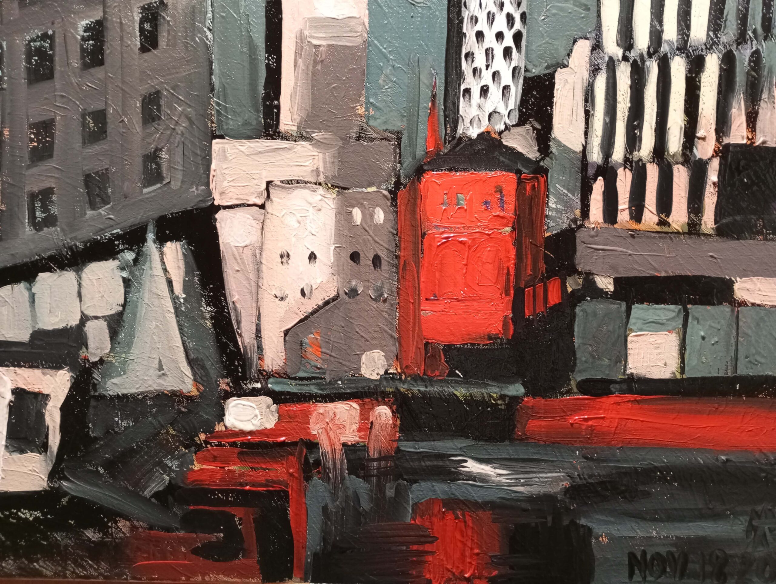 A small painting pulls the viewer closer and thus offers details that could not be perceived from a distance- texture, mistakes, invisible colour hues, brushstrokes, etc.)