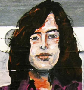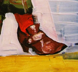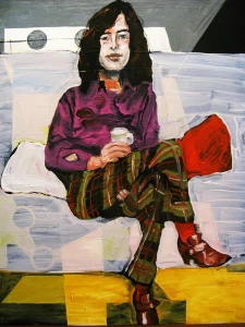 The new paints are thin, almost transparent, so the underlying forms intermix with the new image creating a quite imaginary background for the sitting rock ‘n roller (who by the way is Jimmy Page).