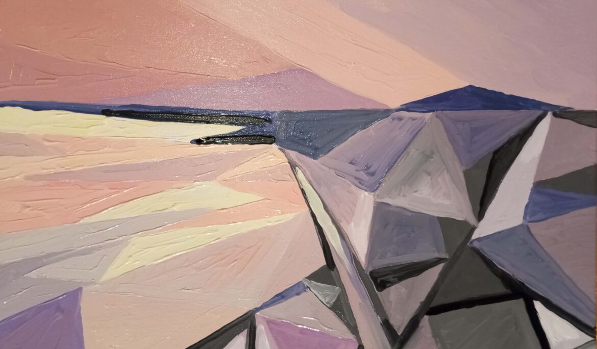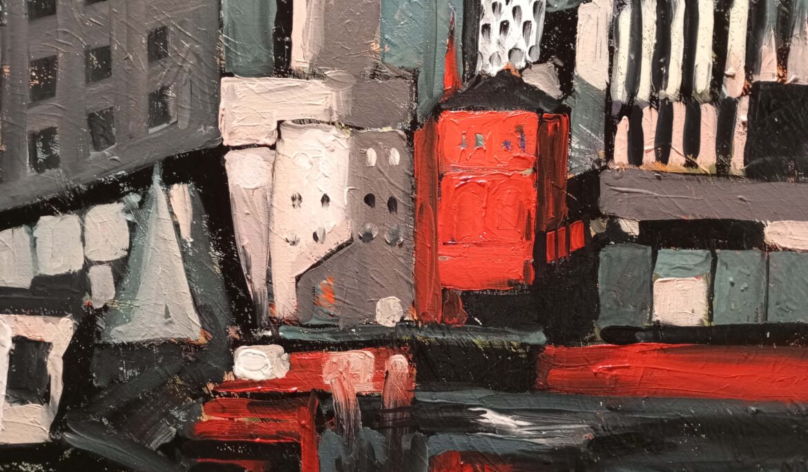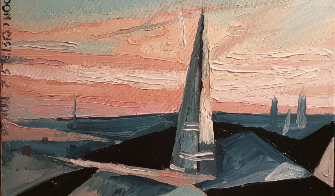 London Crystals 2 CONCEPT DETAILS TECHNIQUE AND MATERIALS: oil on canvas DIMENSIONS (H X W X D) cm: 50 X 40 X 02 YEAR: 2024 Share: A London image organized as a network of Triangles – afternoon